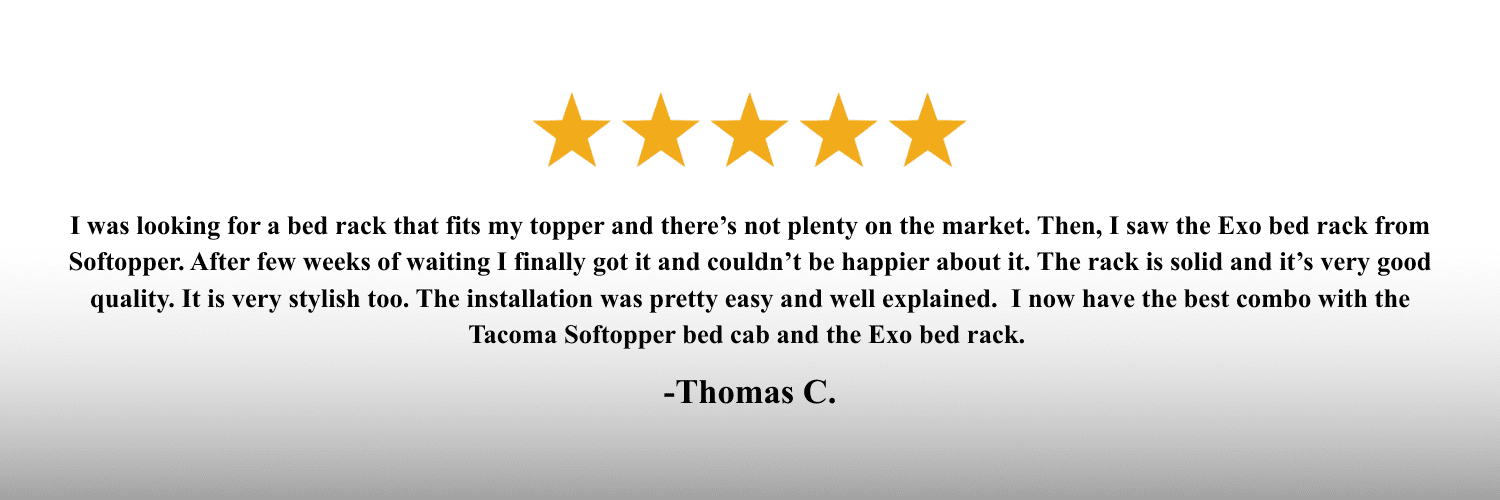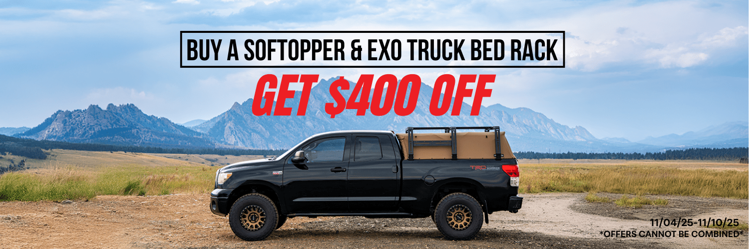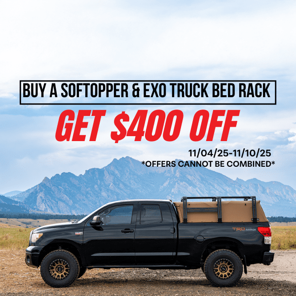 Bundle offer applies only to Softopper tops designed for use with the Exo Truck Bed Rack. Not all tops qualify. Discount valid only when both products are purchased together.