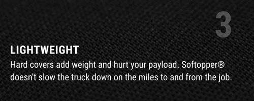 “Perfect for my needs. I do not have a good place to store a traditional fiberglass bed cap, nor did I ever want to deal with finding help to remove/install one. My softopper keeps my tools/equipment dry, and is easy to fold up if I need to have larger items in the bed, or get a load of gravel etc. “